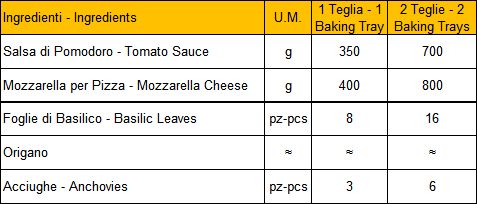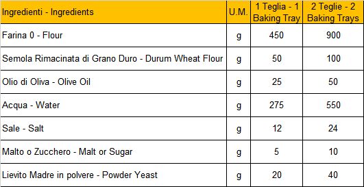 Ingredienti per la pasta da pizza (dosi per teglie da 44×34 cm circa)