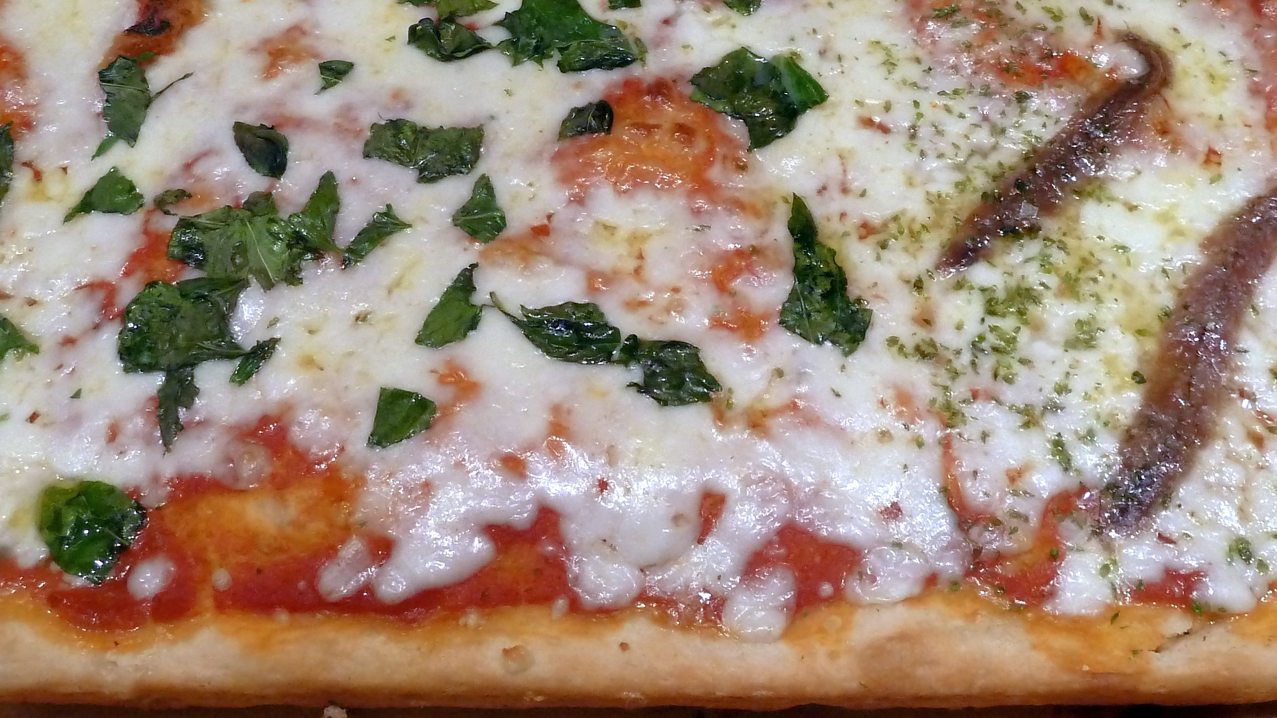 15. Sfornate e aggiungete mozzarella, basilico, acciguhe, origano, olio e sale