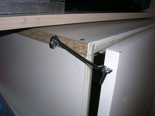 • 2 Magneti per mobili (quelli usati per bloccare le ante degli armadi). In alternativa 1 occhiello aggiuntivo come per il gancio sopra da fissare in posizione “sportello chiuso”