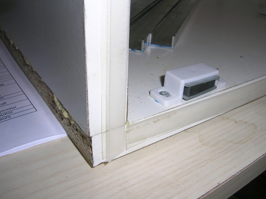 Montate 2 magneti da anta per tener chiuso lo sportello.  Anche qui si possono evitare i mangeti e utilizzare il chiavistello tipo quello che ho usato per tenere socchiuso lo sportello. L’importante è che la guarnzione faccia tenuta.