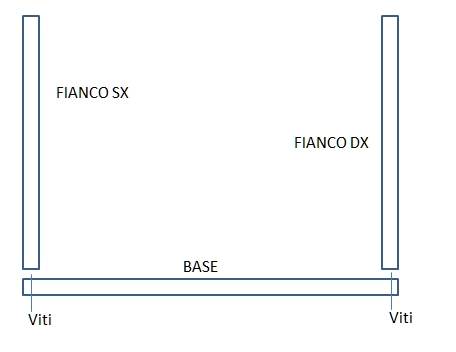 Utilizzanto le viti da 35 mm, assemblate ad angolo retto un primo fianco con la base, cospargendo il bordo di colla o silicone. Per tenere in squadra le assi ho utilizzato le morse a squadretta che si usano per le cornici. Potete anche siliconare dopo avere assemblato.