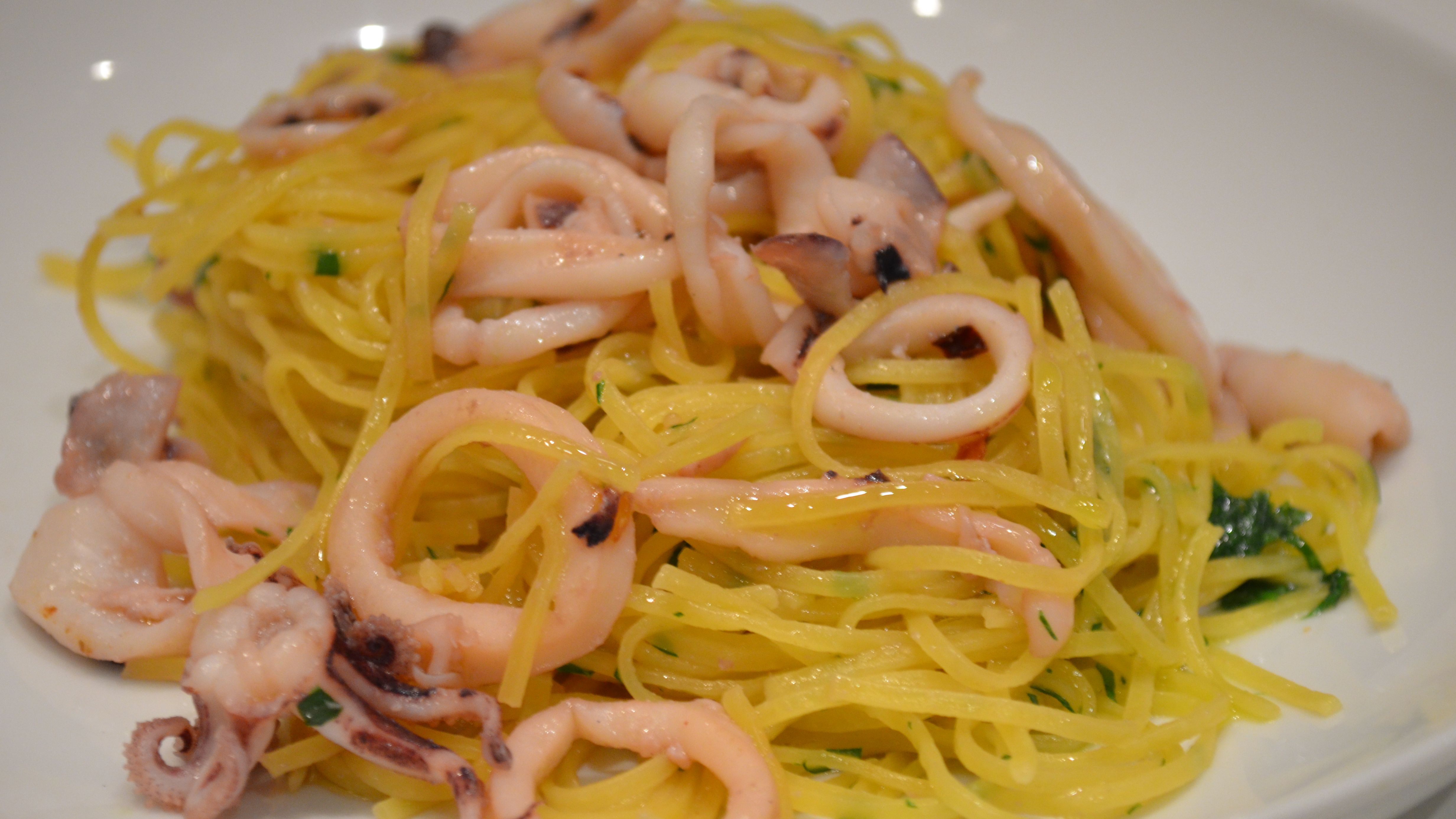 - Scolare i tagliolini e farli saltare nella padella con l’aglio e l’olio